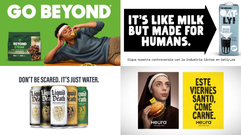 Cuando no hay un marco, tenemos dos opciones: crearlo o adaptarlo. Blanco y en botella puede ser leche o jugo vegetal de avena, avellana o soja. Pero si quiero colarme en el desayuno y la merienda, el atajo es la leche vegetal: aunque las características nutricionales sean distintas y la elaboración no tenga nada que ver. Adaptar el marco nos facilita la entrada, pero nos ancla a la comparativa.